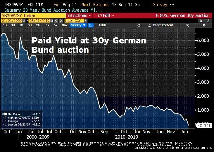 Europa ya se está enfrentando a los primeros problemas de liquidez. El Gobierno alemán pretendía recaudar 2.000 millones de euros con bonos a 30 años y la demanda ha sido de 869 millones. No debería extrañar a nadie que unos bonos a 30 años con rentabilidad del -0,11% no fueran demandados por nadie con un mínimo de sentido común. Pero, al parecer, eso se perdió en Europa hace tiempo.