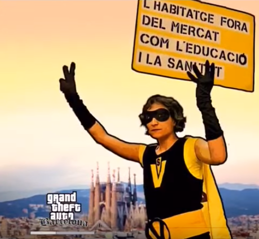 La misión a cumplir la ordena una Ada Colau vestida de abeja, su disfraz de "Supervivienda" con el que solía acudir a sus manifestaciones contra la propiedad privada y a favor de los okupas. En la escena aparece la alcaldesa de en Comú Podem y se puede leer: "Estás rayado porque Colau quiere cerrar Pachá. Apuñala a tanta gente como puedas para vengarte". Y eso hace.