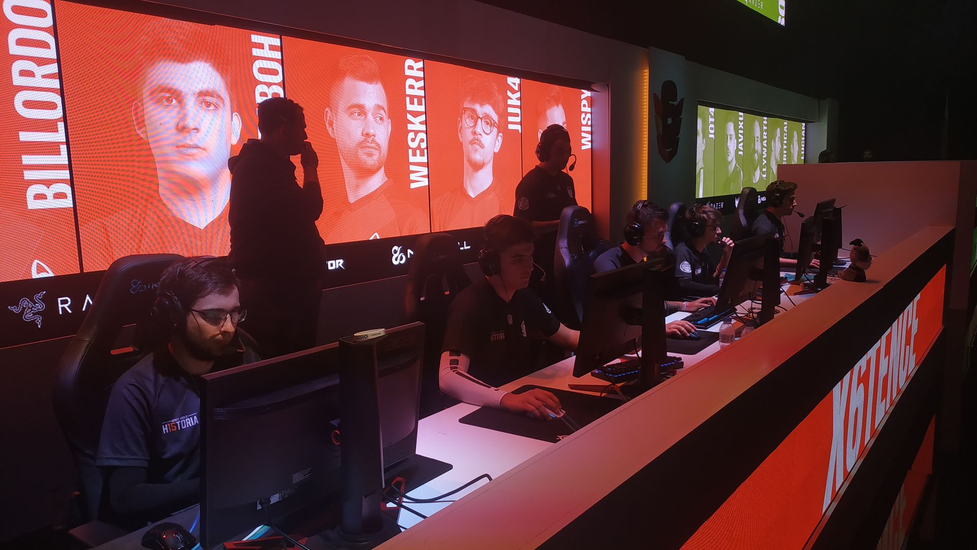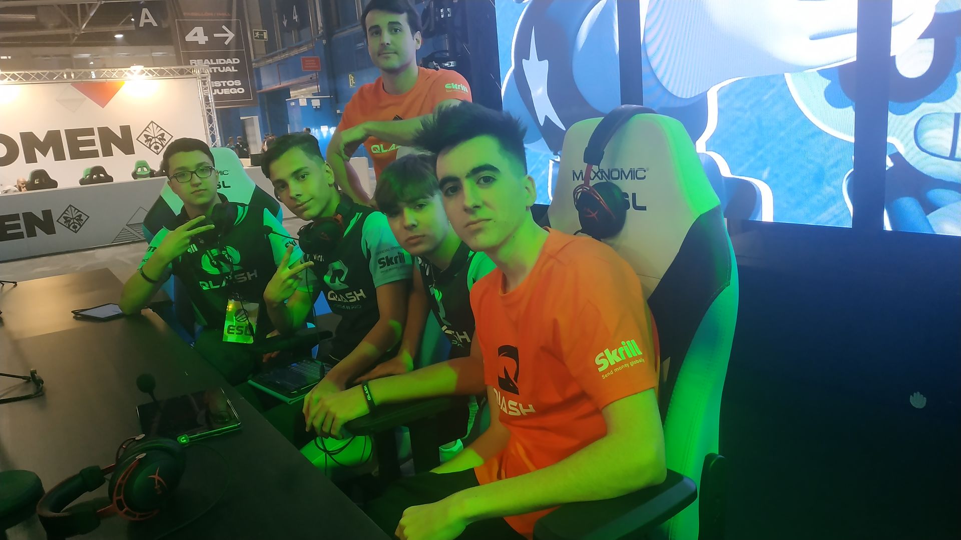 El equipo de X6Tence jugará contra los Wizards en la categoría de los esports. Llama la atención que la afición de los X6Tence se encuentra en el recinto. Banderas, gritos de ánimo y bocinas se escuchan antes de que arranque el campeonato. Los jugadores hacen un círculo, se dan apoyo moral, el entrenador los motiva antes de sentarse a los mandos, aquello es un espectáculo.