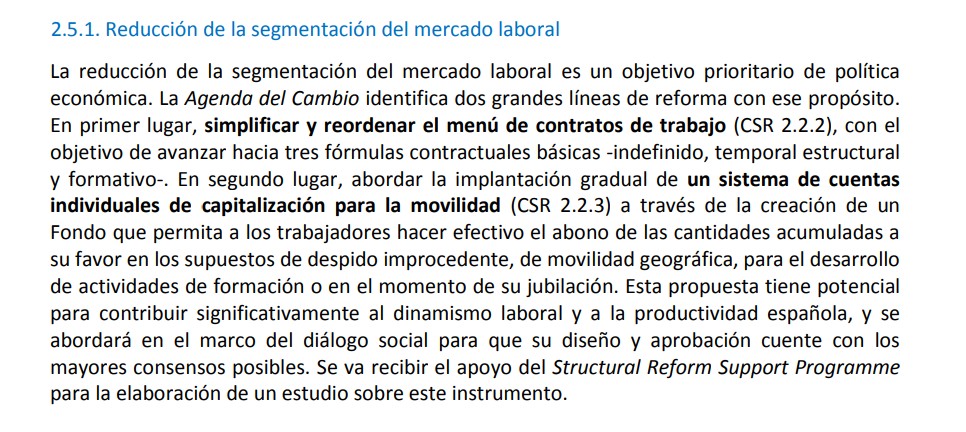 En el documento de casi 100 páginas que redactaron los socialistas, este concepto aparece en el apartado 2.5.1 titulado como Reducción de la segmentación del mercado laboral. En ese punto, el PSOE plantea la siguiente medida para solucionar los problemas del mercado laboral español: "Implantación gradual de un sistema de cuentas individuales de capitalización para la movilidad a través de la creación de un Fondo que permita a los trabajadores hacer efectivo el abono de las cantidades acumuladas a su favor en los supuestos de despido improcedente, de movilidad geográfica, para el desarrollo de actividades de formación o en el momento de su jubilación". Aunque no lo mencionan específicamente, se trata de la mochila austriaca.