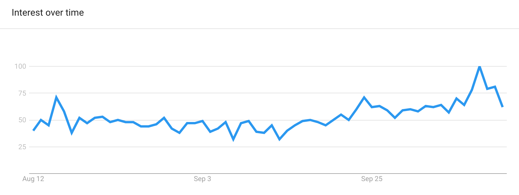 Popularidad de las búsquedas sobre la palabra "crisis" en Google (de 0 a 100), agosto-octubre 2019