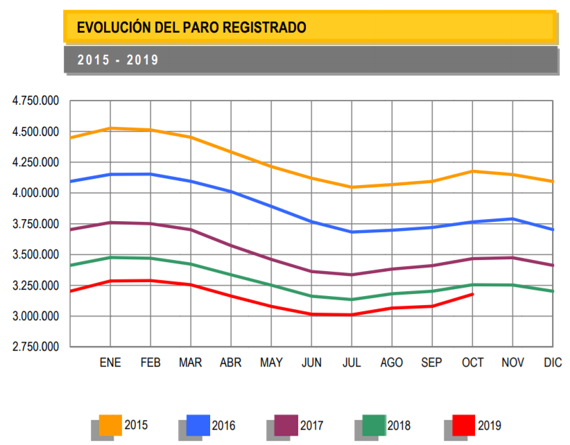 De este modo, el volumen total de parados se situó en 3.177.659 personas, su nivel más bajo en un mes de octubre desde 2008. Otro factor relevante es que, una vez eliminado el efecto estacional para poder realizar comparaciones homogéneas con independencia del momento del año, el paro aumentó en 29.153 personas respecto a septiembre, protagonizando así el primer incremento en este mes desde 2012 y el mayor desde octubre de 2011, cuando la economía española estaba en recesión.