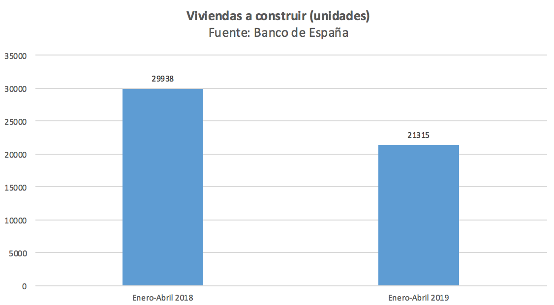 Si nos ceñimos a los datos referidos al número de viviendas en construcción, las cifras son igualmente preocupantes. De enero a abril de 2018, esta rúbrica alcanzó un total de 29.938 unidades. Sin embargo, en el primer cuatrimestre de 2019 se produjo una fuerte corrección hasta las 21.315 nuevas promociones. La caída, en este caso, llega al 29%.