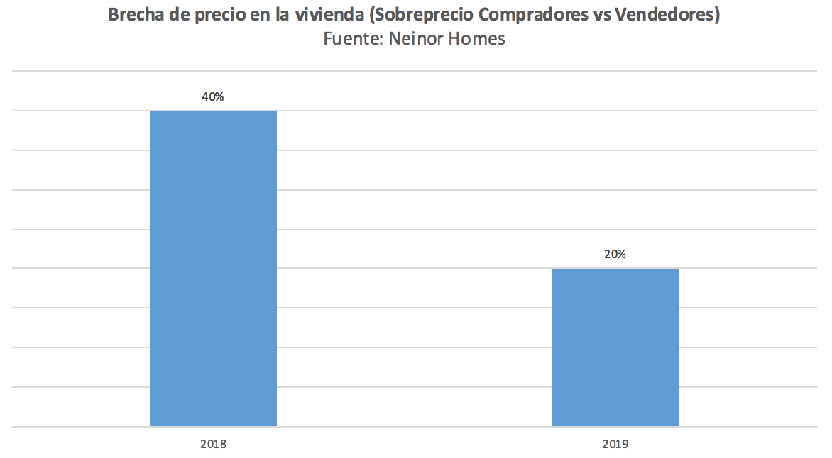 Estas estrecheces en la actividad del mercado empiezan a motivar ajustes de precio mucho mayores de lo habitual. La cotizada Neinor Homes presentó recientemente resultados y apuntó que, según sus estadísticas, la brecha entre los precios que piden los vendedores y los pagos que ofrecen los compradores ha caído del 40% al 20% en los últimos meses.
