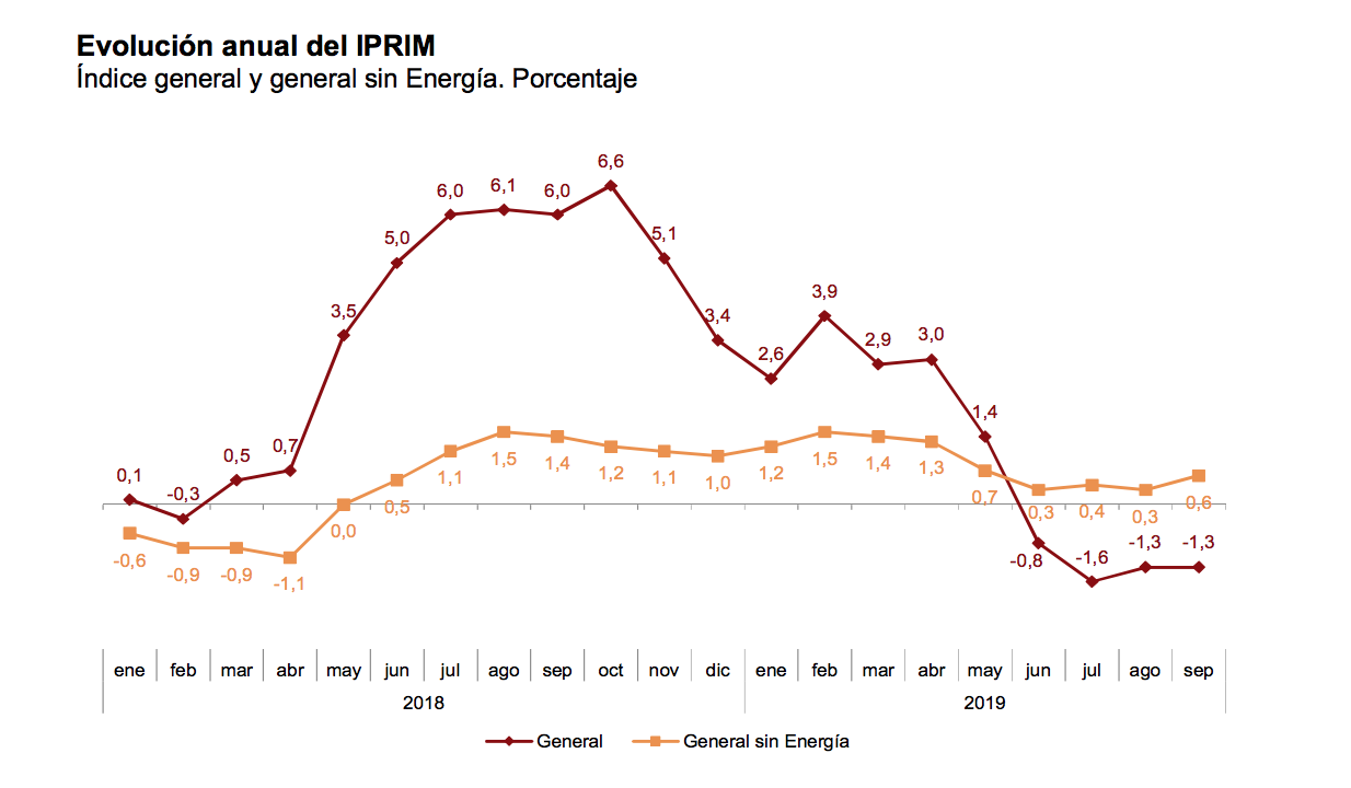 Tampoco hay buenas noticias en el Índice de Precios de Exportación (IPRIX) y de Importación (IPRIM), que mide la evolución de las compras y ventas internacionales de nuestra economía. Si nos fijamos en la variación de los precios de importación, la evolución en septiembre apunta a una caída del 1,4%. Si atendemos a los precios de la exportación, los datos para el pasado mes arrojan un descenso del 1,3%.