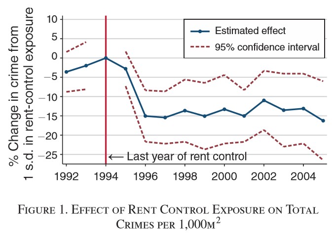 Vemos así, que el control del precio del alquiler tiene importantes efectos negativos sobre la oferta de vivienda disponible para alquilar, el precio, que puede aumentar con el control, y, aunque no sea lo más intuitivo, sobre el crimen. Por tanto, antes de poner en marcha medidas de esta índole, hemos de tener en cuenta la evidencia empírica sobre ella, y en este caso, no le es favorable, aunque es necesario investigar más sobre esta política.