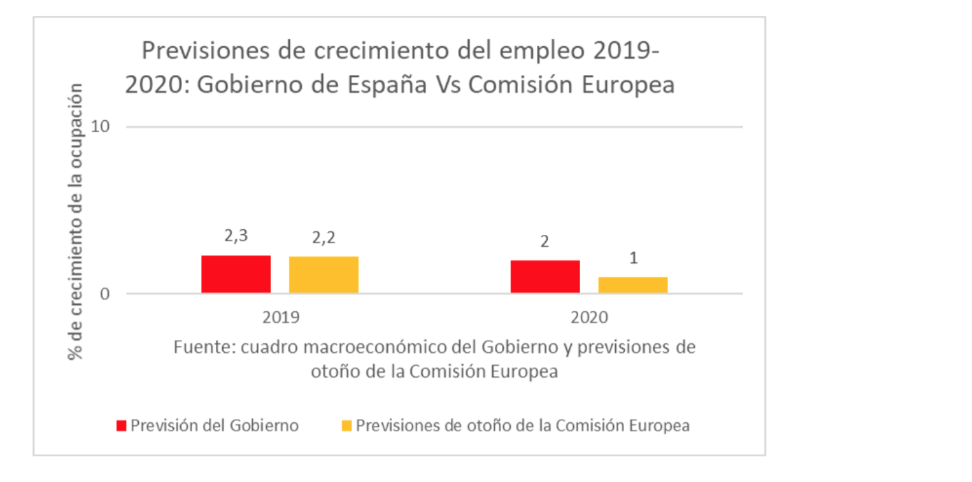 Por último, todo ello desemboca en un perjuicio sobre el empleo. Así, mientras que la evolución económica antes de la moción de censura permitía prever una tasa de paro del 13,8% en 2019, del 12,3% en 2020 y del 11% en 2021, la Comisión Europea las ha empeorado y estima una tasa de paro del 13,9% para 2019, del 13,3% para 2020 y del 12,8% para 2021.
