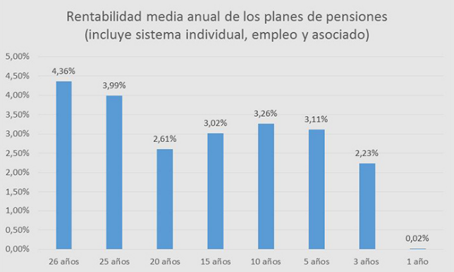 Si ponemos por ejemplo este gráfico de Inverco ( La patronal de instituciones de inversión colectiva), vemos que la rentabilidad media de un plan de pensiones en 20 años, apenas es un 2.60% anual…Si a dicha rentabilidad le restamos la inflación de cada año, que ha estado estaríamos hablando que la inflación media en España ha sido de un 2.22% en los últimos 20 años, por lo los ahorradores que han invertido en Planes de Pensiones, de media apenas habríamos obtenido una rentabilidad del 0.38% anual.