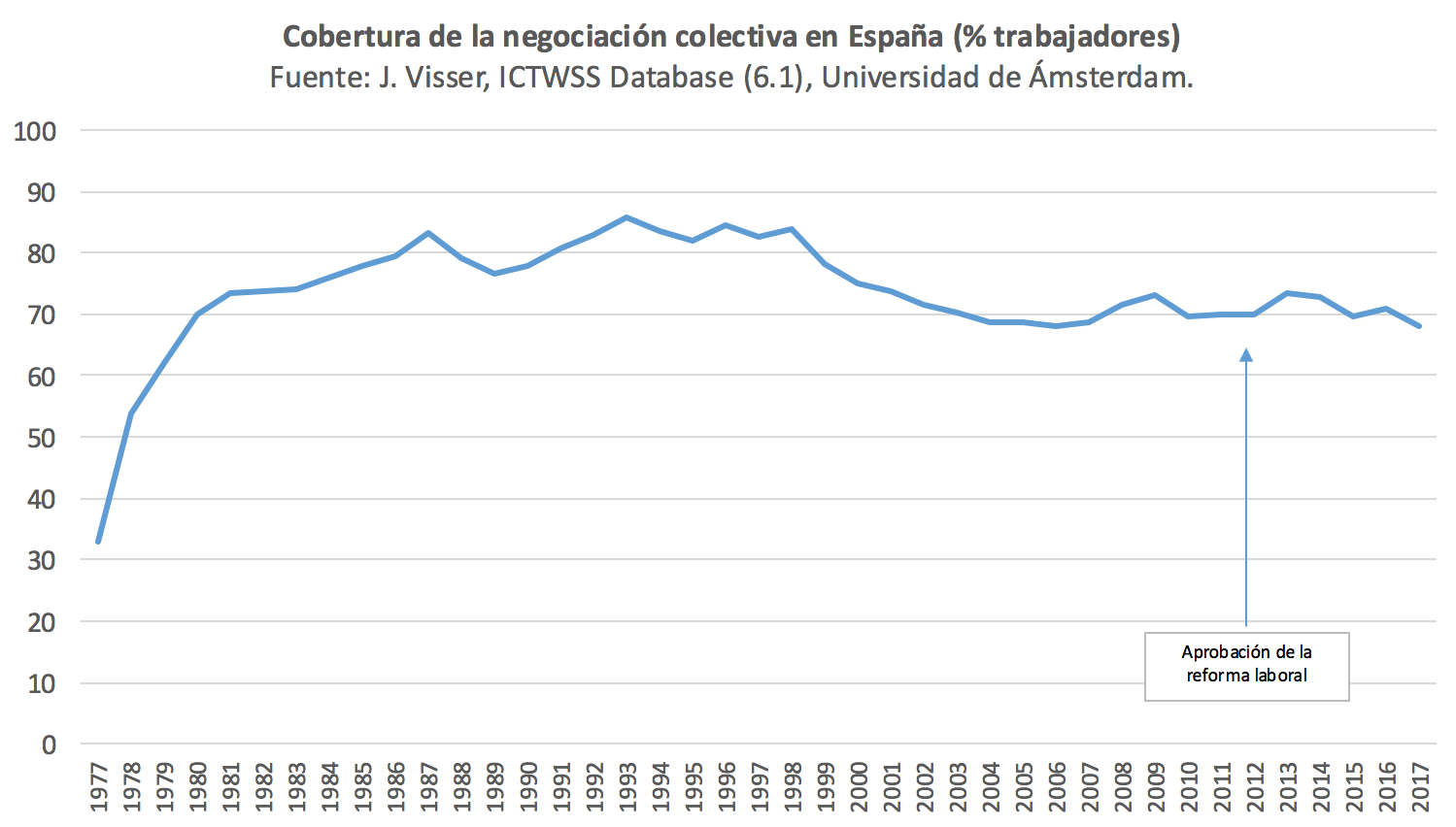 Pero los críticos de la reforma laboral siguen sin tirar la toalla. Ahora, el discurso dominante habla de "recuperar el peso de la negociación colectiva", es decir, volver a centrar el peso de la evolución salarial en los acuerdos sectoriales que suscriben la patronal y los sindicatos. En efecto, las reglas de la reforma del mercado de trabajo de 2012 permiten "descolgarse" de dichos acuerdos y centrar las negociaciones a nivel empresa, pero esto no significa que las mercantiles apuesten siempre por ese camino, sino que simplemente abre la puerta a descentralizar los procesos cuando sea necesario.