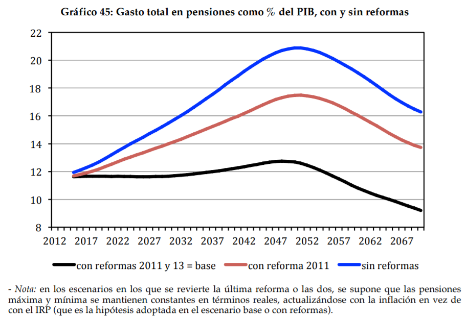 Según las estimaciones de Fedea, la derogación de la reforma de 2013 incrementará el gasto anual en pensiones en unos 5 puntos porcentuales del PIB, equivalentes a más de 50.000 millones de euros actuales, sin que existan recursos suficientes para financiarlas, de modo que la factura recaerá sobre los futuros pensionistas de manera mucho más intensa, ya sea en forma de fuertes subidas de impuestos hoy y/o mayores recortes en sus respectivas prestaciones mañana, cuando les llegue el momento de la jubilación.