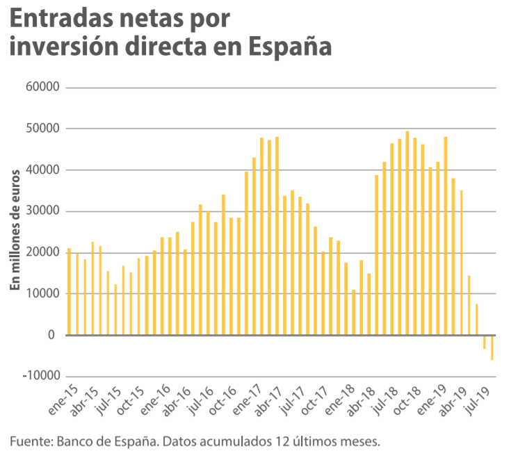 La combinación de proteccionismo comercial a nivel mundial e incertidumbre política a nivel interno ya está afectando de forma negativa a la actividad económica, según alerta el último informe de UFM Market Trends sobre España. Esto último se refleja especialmente en la caída que está experimentando la inversión extranjera directa en España en los últimos meses.