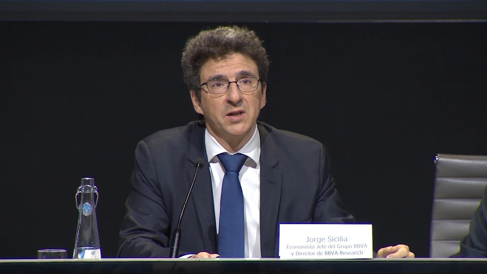 Era una de las citas importantes del día, la presentación del informe del servicio de estudios del BBVA (ahora BBVA Research) sobre las perspectivas macroeconómicas para nuestra economía en este año y el próximo a cargo de Jorge Sicilia, economista jefe del Grupo y del responsable de Análisis Económico de BBVA Research, Rafael Doménech.