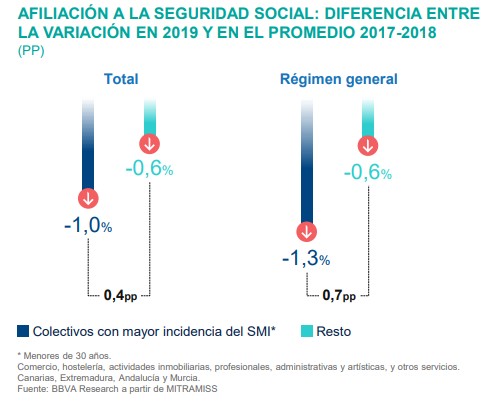 Dice el informe que si se cumple este escenario se creará más de medio millón de puestos de trabajo durante este año 2020, lo que hará que la tasa de paro baje al 12,5% y se daría por "detenida" la desaceleración, para dar paso a un pequeño avance y una leve mejoría del tono.
