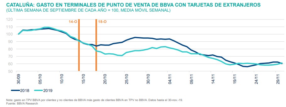 Otro de los asuntos que debe resolver España para poder frenar la desaceleración y comenzar la recuperación económica es el impacto negativo de las tensiones en cataluña. "El cambio de tendencia en la evolución de la economía catalana desde el segundo semestre de 2017 ha supuesto un lastre para el crecimiento del conjunto de la economía española", dice el informe.