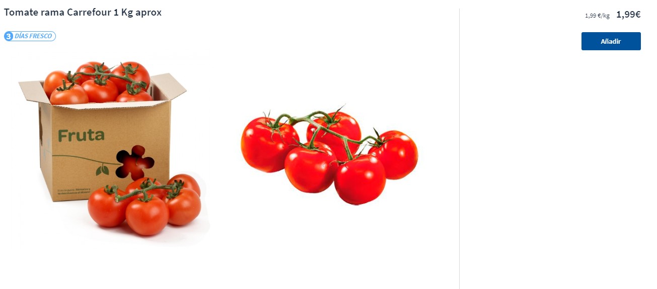Claramente lo que dicen los protagonistas de este vídeo es falso debido a que el precio medio de una cesta de tomate en los supermercados oscila entre 1,19 €/kg y 1,99€/kg.