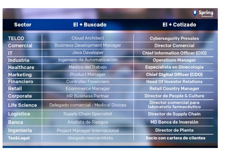 Fuera de lo tecnológico, entre los diez puestos más demandados aparece el de director comercial y el de médico del trabajo, encargado de vigilar la seguridad de los trabajadores en las empresas. También, los especialistas en ginecología aparecen dentro de los más buscados sin necesidad de tener cualidades tecnológicas.