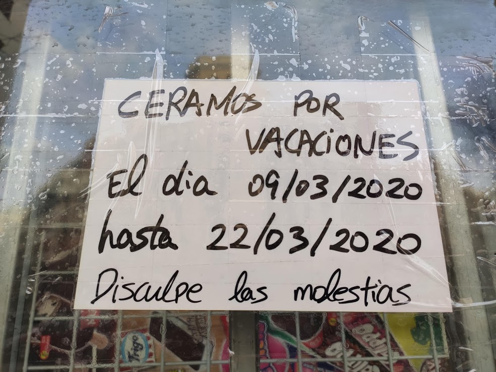 En el barrio madrileño de Chamberí, casi todos los bazares, tiendas de alimentación y de manicura tienen la persiana bajada y con el mismo cartel: "Cerrado por vacaciones hasta finales de marzo". Otro de los motivos que aportan son por "remodelación" o por "días de descanso".