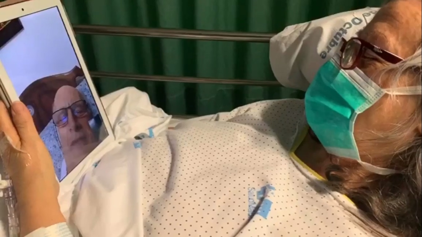 Paciente de coronavirus hablando con un familiar | Acortando la distancia