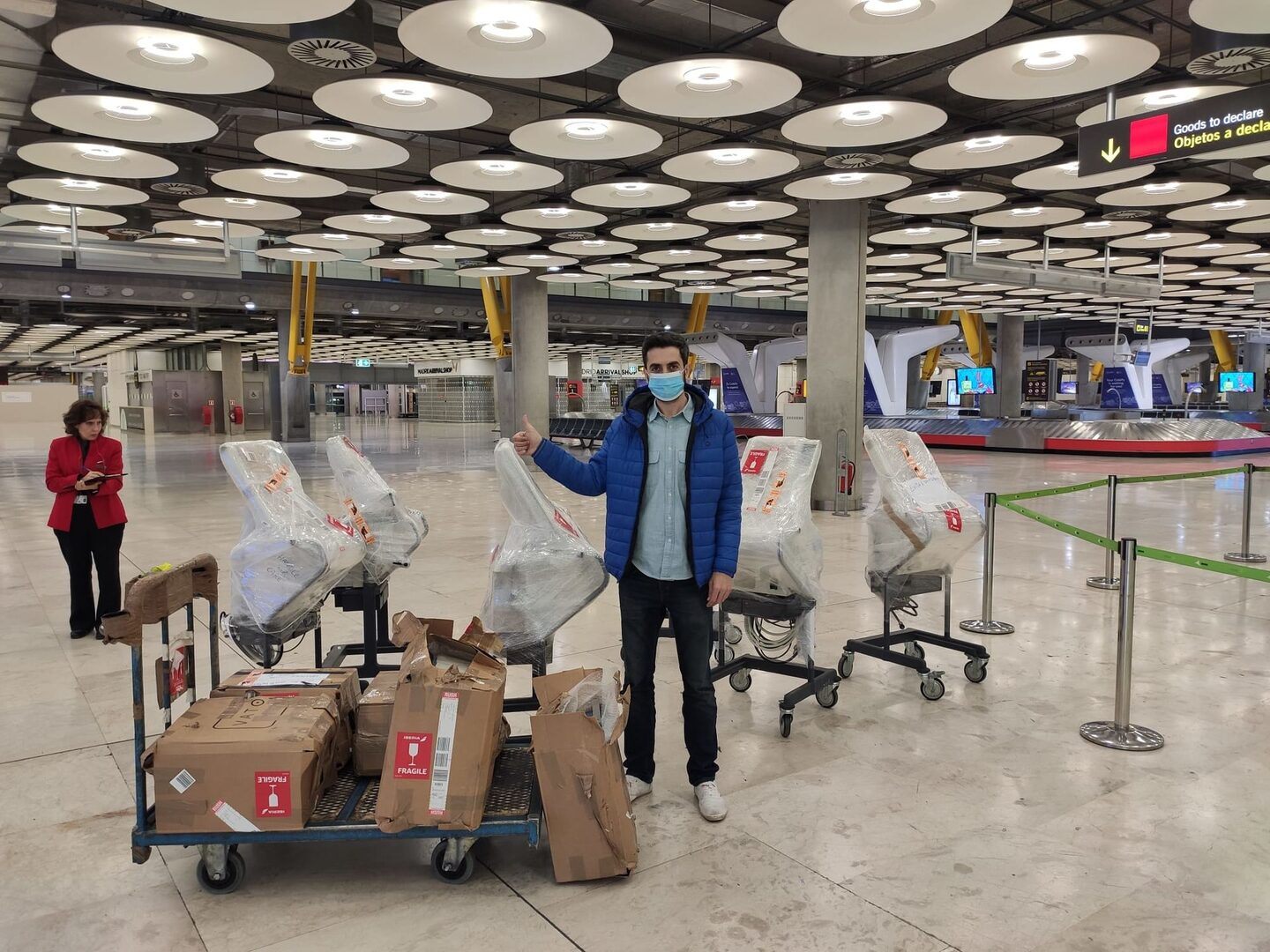 Después, el siguiente problema era ¿cómo transportarlos hasta España? Aquí entra en juego otra empresa privada: Iberia. Recurrieron a esta aerolínea fundada en nuestro país para transportar los 11 primeros respiradores en un vuelo comercial y volvieron a acertar. "Se ofrecieron a traerlos sin coste y llegaron muy rápido. Si traes material de segunda mano en cantidades pequeñas y con el salvoconducto del hospital, nadie te pone ninguna pega, aunque la gestión aduanera hay que hacerla. ¡No sé cómo no se le ha ocurrido a nadie pensar en los respiradores de segunda mano!", exclama el empresario.