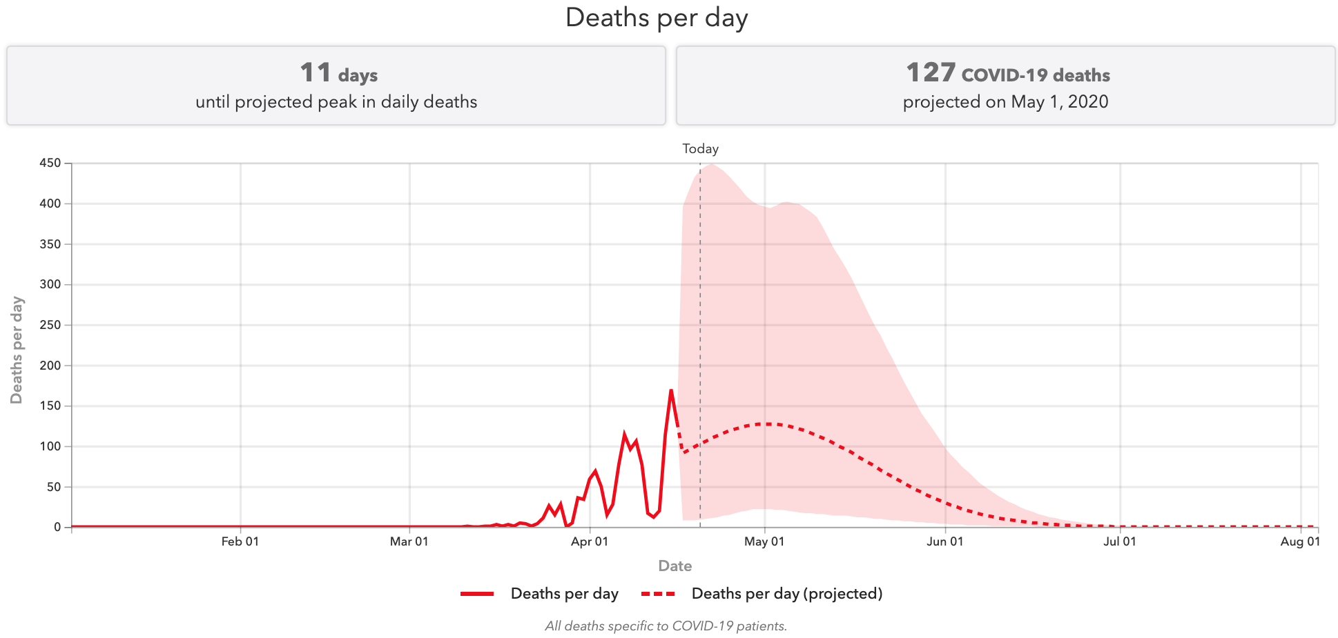 Si procedemos a analizar el total de fallecidos, que quizá constituye el indicador más crítico de todos. Suecia ha sufrido 152 muertes por coronavirus, frente a las 61 de Dinamarca, las 30 de Noruega o las 17 de Finlandia. Los modelos del IHME anticipan que el punto de inflexión en materia de fallecidos se alcanzará a final de abril o comienzos de mayo.