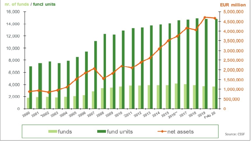 Luxemburgo es el centro de fondos de inversión más grande de Europa y el segundo más grande del mundo después de los Estados Unidos, con más de 4.668 billones de euros en activos netos gestionados en más de 14,700 unidades de fondos (unidades=fondos + subfondos – fondos sombrilla). Entre las estrategias con mayor volumen de patrimonio destacan la Renta Fija (1.444 billones de euros) y la renta variable (1.348 billones de euros), y los que menos los private equity con 104.169 millones de euros.