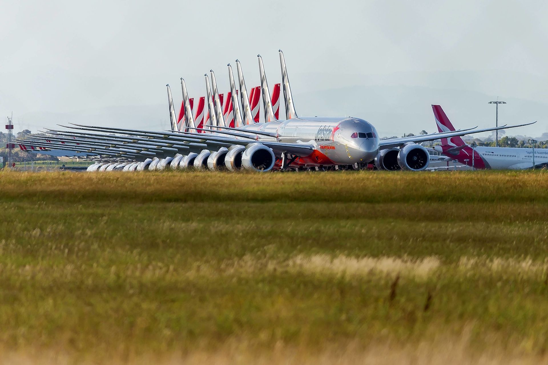 Varios aviones de Quantas estacionados en el aeropuerto de Avalon.