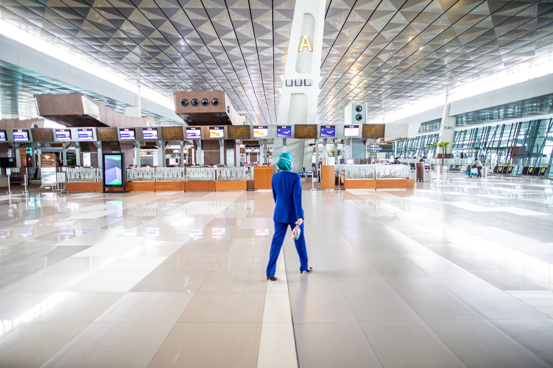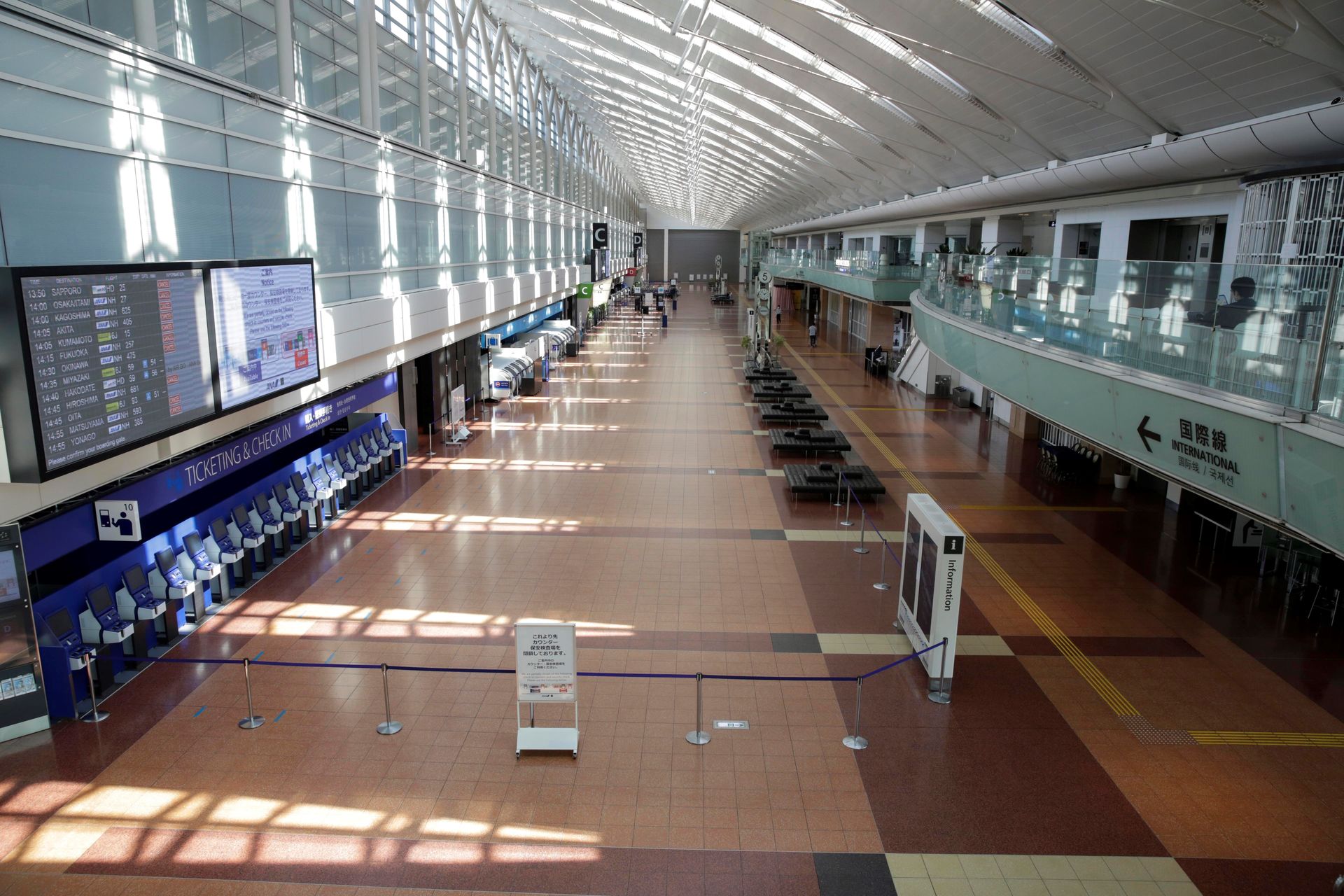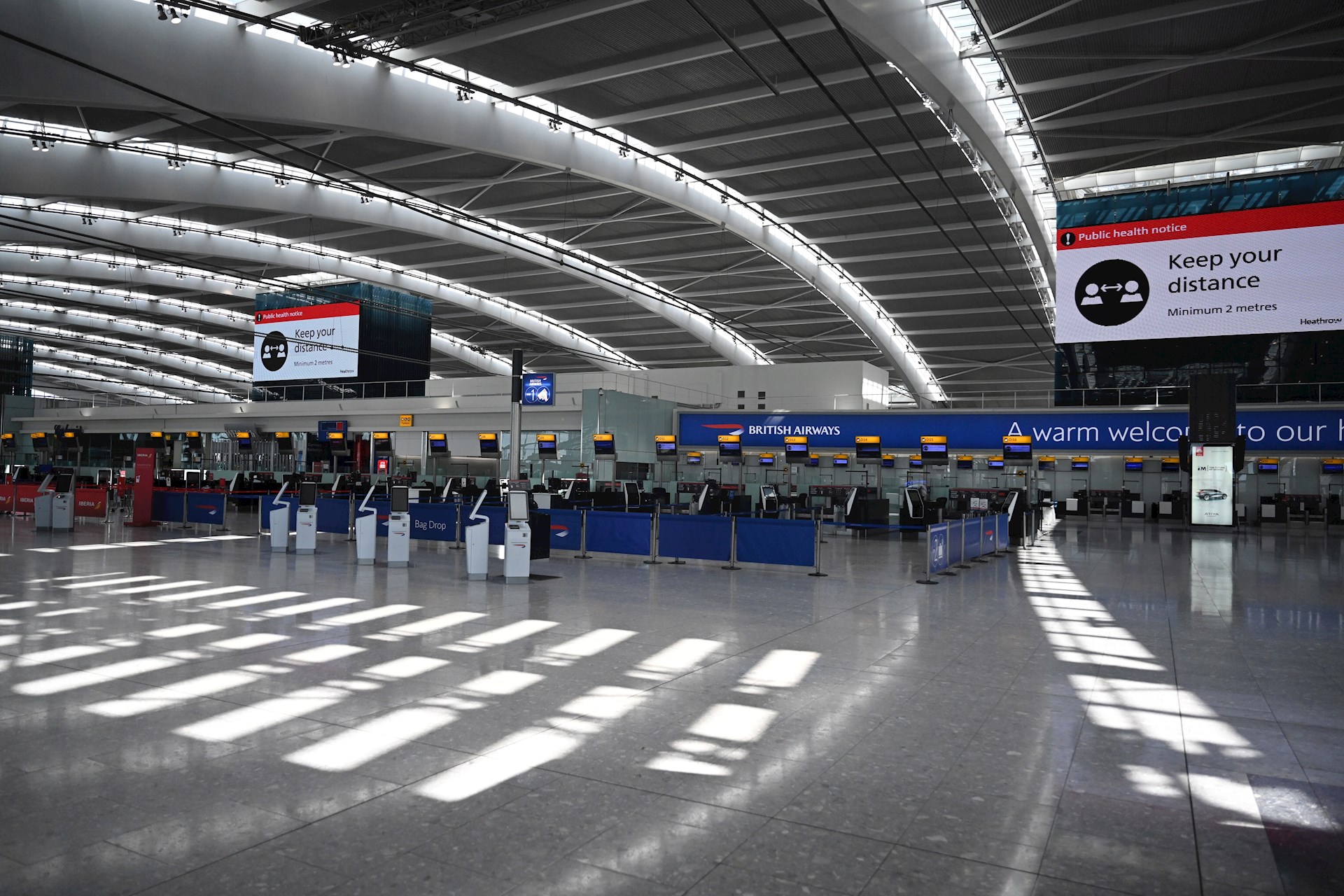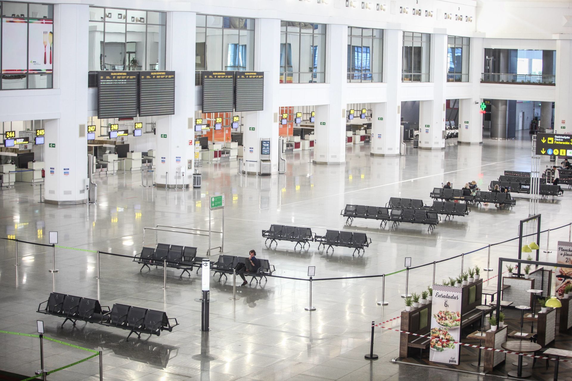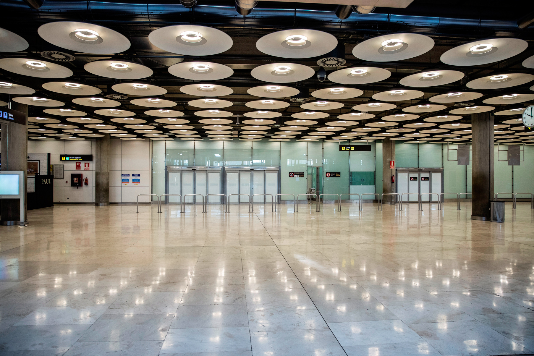 Mostradores de facturación en el interior de la termina 4 vacía de Madrid Barajas.