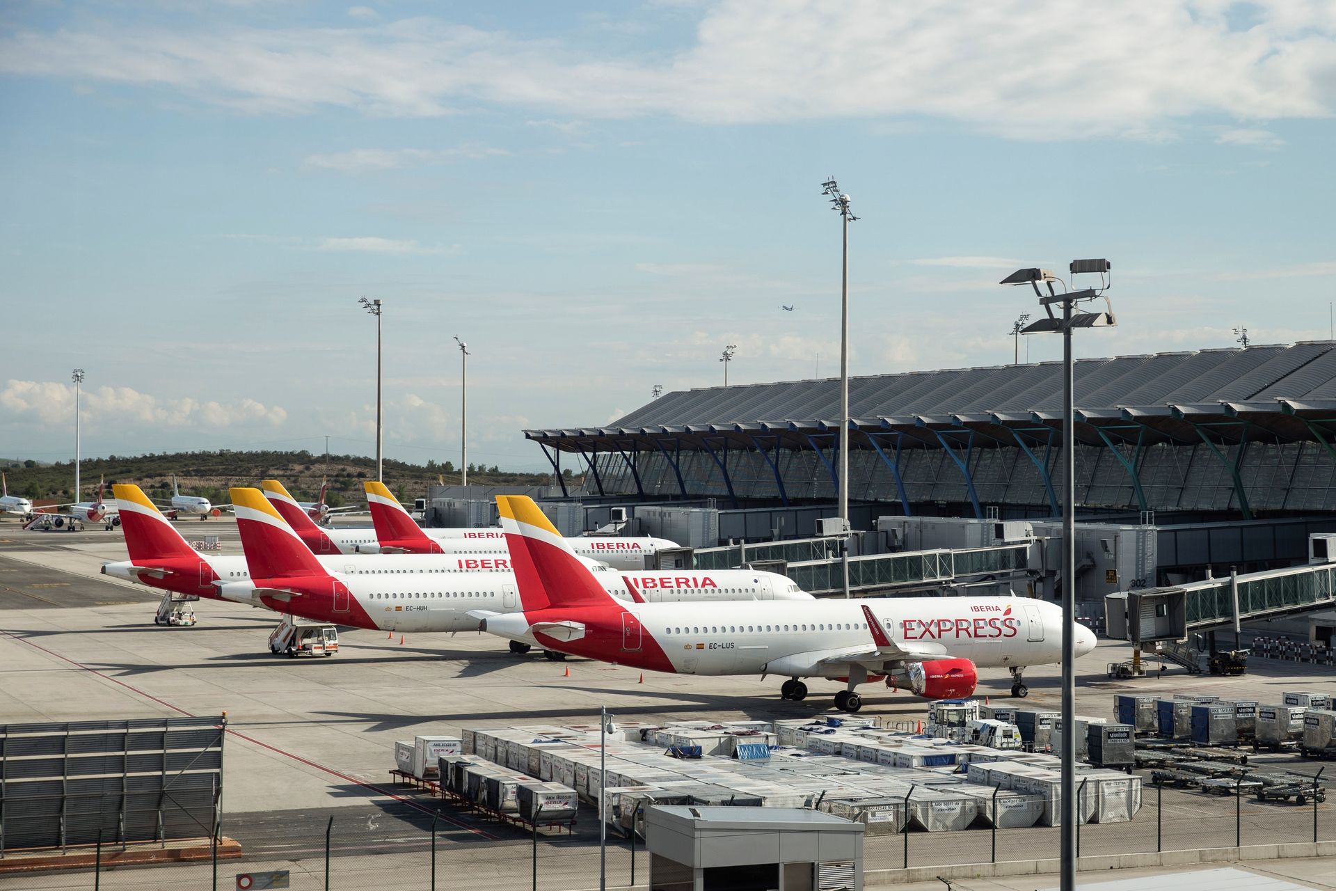 Varios aviones de Iberia estacionados en el aeropuerto de Barajas, en Madrid.
