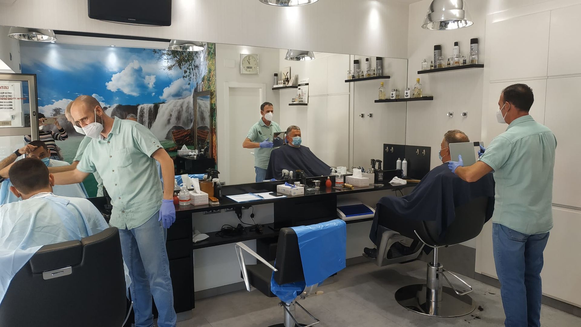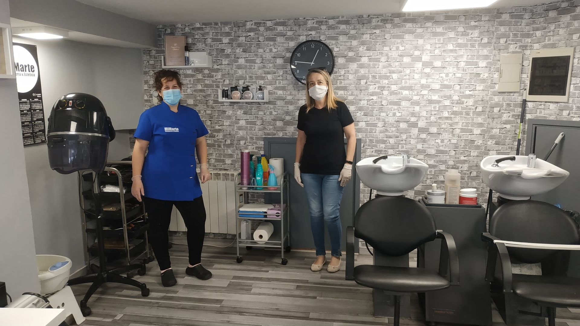 La empresaria nos enseña el circuito sanitario que cumplen a rajatabla en la peluquería. "Cada vez que un cliente se va todo es desinfectado. Los lavacabezas, peines, secadores...Una corta y la otra se encarga de ir limpiando todo", explica Raquel. Mientras tanto, en la calle un cliente está esperando fuera fumando un cigarrillo. "Yo no tengo miedo de venir porque confío en ellas, soy cliente de siempre. A otro sitio quizás no me atrevería", indica el caballero mientras le conducen a que realice el circuito sanitario en el salón de belleza.