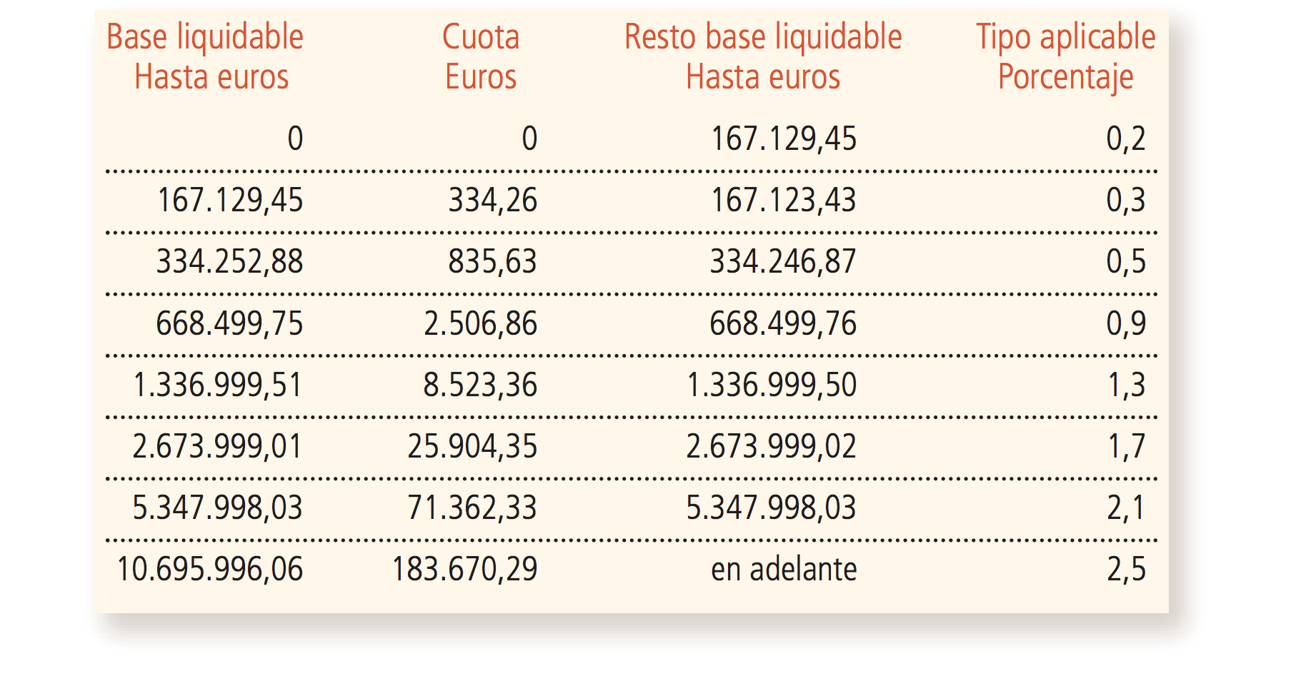- 2% para patrimonios netos a partir de 1.000.000 de euros.