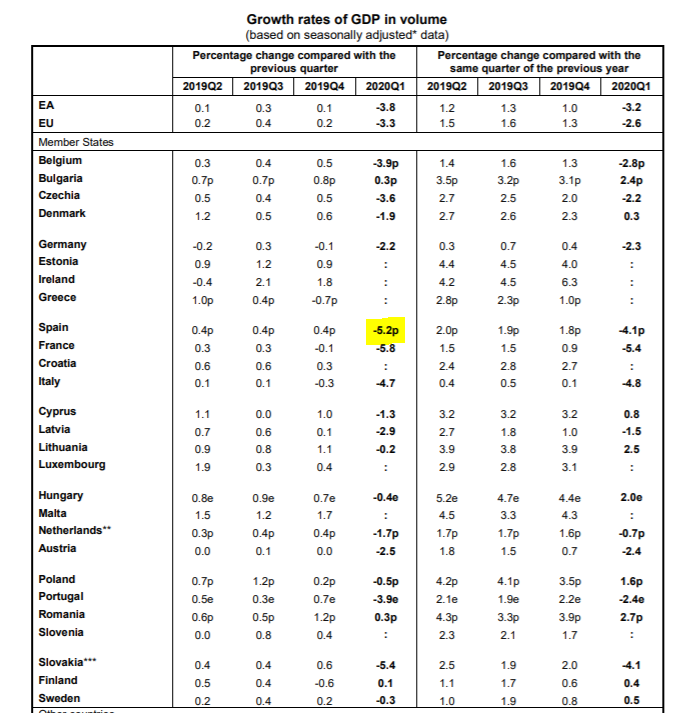Las cifras confirman lo que muchos economistas llevamos advirtiendo desde hace tiempo: España afronta la crisis económica del Covid 19 desde el vagón de cola en Europa. Las razones ya las explicamos en esta columna (lean), y las cifras así lo avalan. Según los últimos datos hechos públicos por Eurostat, España es el segundo país de la Unión Europea con mayor impacto económico en el primer trimestre del año. Estar en esta situación con tan sólo 15 días de confinamiento es sinónimo de contar con una caída que podría superar el 20% del PIB en el segundo trimestre del año y que nos aboca a un descenso de doble dígito en 2020.