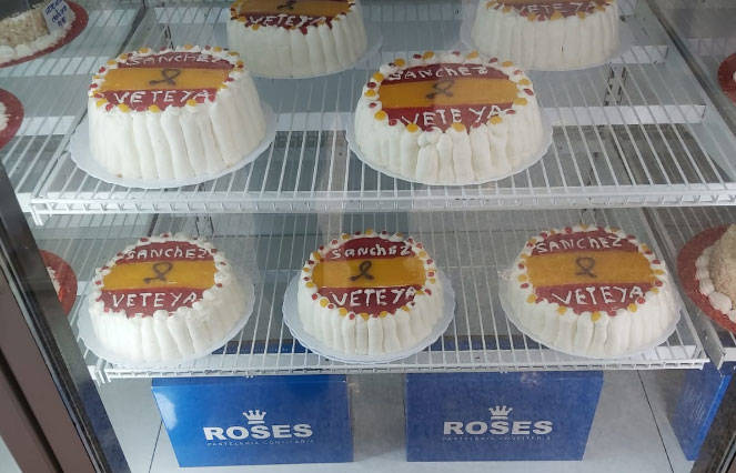 Desde hace un mes la familia Roses llevaba elaborando 25 tartas a la semana en las que se pedía la dimisión del presidente del Gobierno. Estaban siendo todo un éxito en Murcia. Sus ingredientes: sirope de fresa para representar el color rojo de la bandera de España y yema de huevo para el relleno del color amarillo. Acompañaba un crespón negro con el mensaje "Sánchez, vete ya". Eran estos los aderezos de las tartas que han desatado la ira en redes sociales por parte de grupos totalitarios.