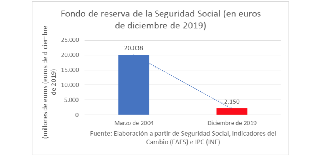 Ese coste de 3.000 millones de euros es mayor que el montante que Sánchez ha dejado en el Fondo de Reserva de la seguridad Social, con 2.150 millones de euros a cierre de 2019.