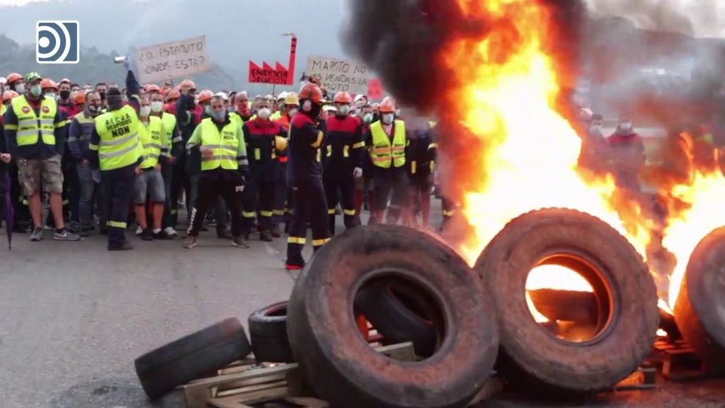 El comité de empresa de la factoría de Alcoa en San Cibrao, en la costa de Lugo, también mantiene las protestas para reclamar una solución que evite el despido de más de 500 trabajadores de la fábrica de aluminio primario y a primera hora de esta mañana han vuelto a bloquear el acceso principal al complejo industrial con una barricada formada por neumáticos a los que luego les plantaron fuego.