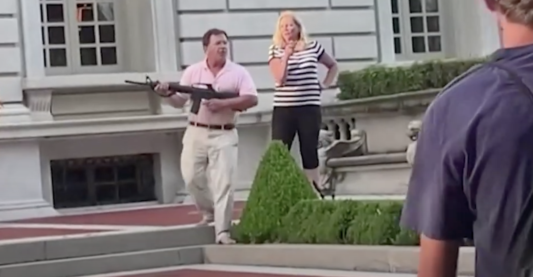 El primer vídeo que salió a la luz en las redes sociales mostraba a los McCloskey en el porche de su mansión, armados con un rifle y una pistola y en actitud desafiante ante los radicales que les gritaban y amenazaban. La estampa parece sacada de una película de Clint Eastwood y ha sido compartida de forma masiva en redes sociales, hasta el punto de que el propio presidente de Estados Unidos, Donald J. Trump, la ha difundido en su cuenta personal.