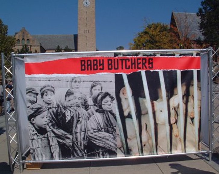 En su momento, el subdirector del departamento de comunicaciones de PETA, dijo que el Holocausto había matado a 12 millones de personas, pero sólo en Estados Unidos, 28 mil millones de animales eran asesinados cada año de la misma forma.
