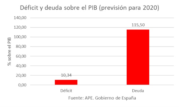 Esto dificulta más la sostenibilidad de las cuentas públicas, pues el propio Gobierno prevé, y vuelve a ser optimista, que el déficit será del 10,34% del PIB y la deuda alcanzará el 115,5% del PIB. La mayoría de instituciones considera que el déficit podrá ser cercano al 15% y que por el efecto de caída del PIB, que estiman que estará por encima del 9,2% previsto por el Gobierno, el efecto en deuda puede elevar a ésta entre tres y diez puntos sobre lo previsto por el Ejecutivo, dependiendo de la intensidad final del incremento del déficit y de la caída del PIB.
