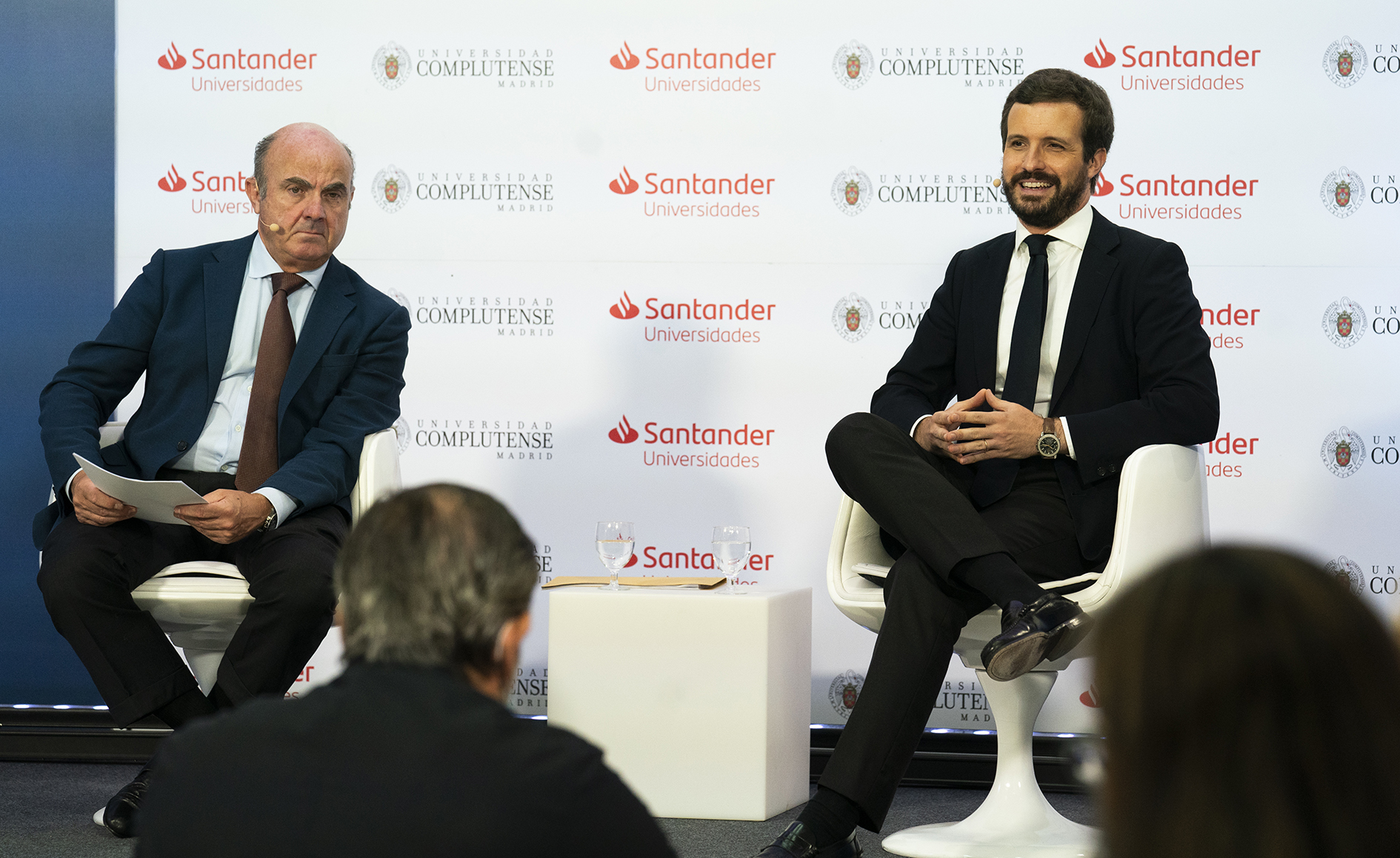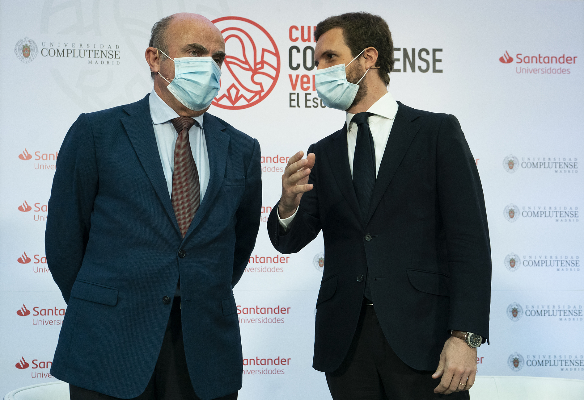 Casado ha inaugurado este lunes junto a Luis De Guindos las jornadas "Activemos España con Europa", que organiza esta semana el Grupo del PPE en el Parlamento Europeo en El Escorial y en las que participarán dirigentes populares como los portavoces del PP en el Congreso, Senado y Parlamento Europeo, Cayetana Álvarez de Toledo, Javier Maroto y Dolors Montserrat.