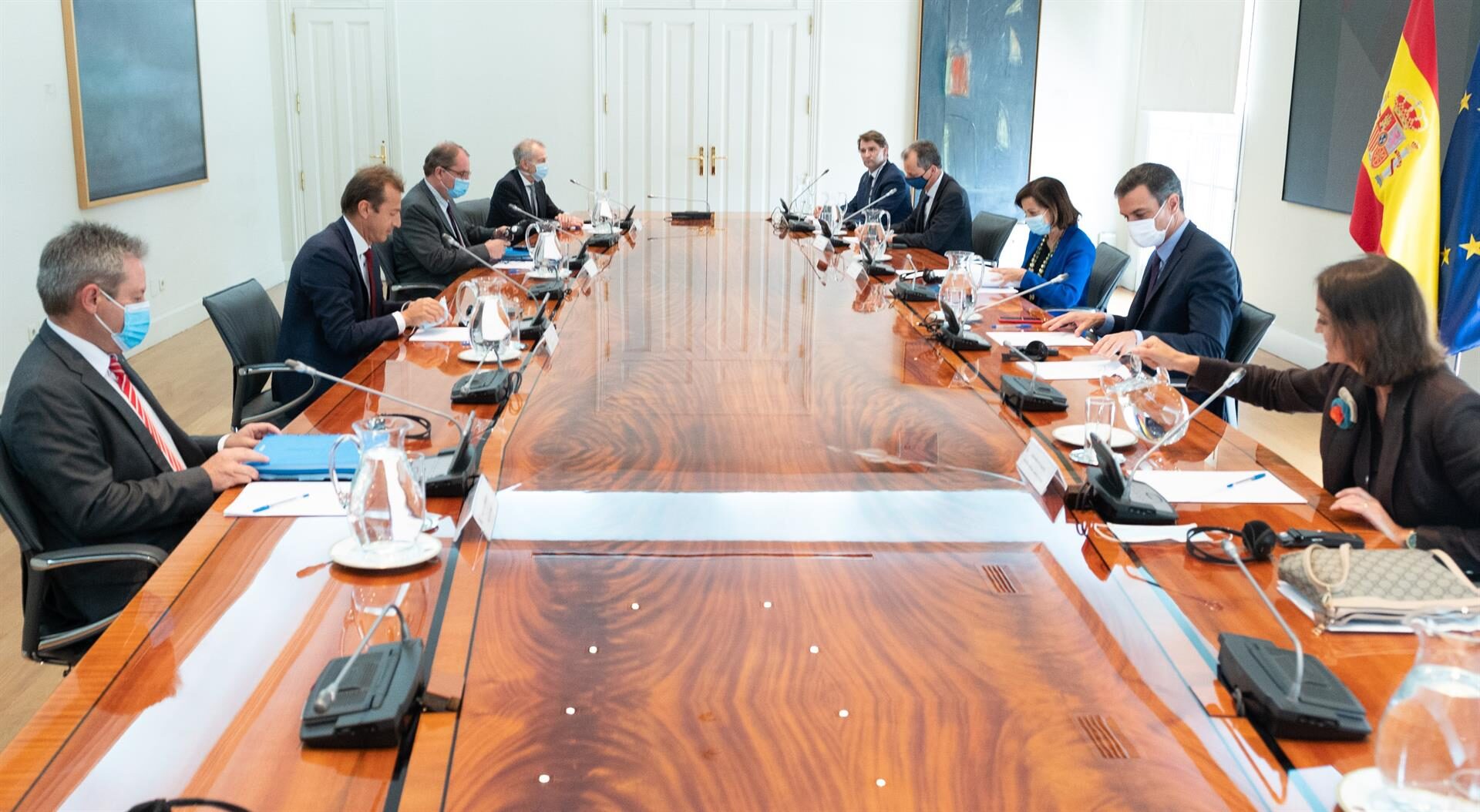 El presidente del Gobierno, Pedro Sánchez, ha recibido este jueves al consejero delegado de Airbus, Guillaume Faury, en una reunión de trabajo en la que han analizado el impacto sin precedentes que la pandemia de la Covid-19 ha provocado en la industria aeroespacial y en las aerolíneas, así como medidas para mitigarlo.