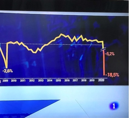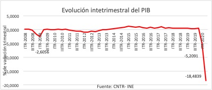 De esa manera, en dicho segundo trimestre del año, el PIB trimestral caía un 18,5% y el PIB interanual descendía un 22,1%, unas bajadas nunca vistas en la historia reciente de la contabilidad nacional, de manera que habría que remontarse hasta la Guerra Civil para encontrar algo semejante.
