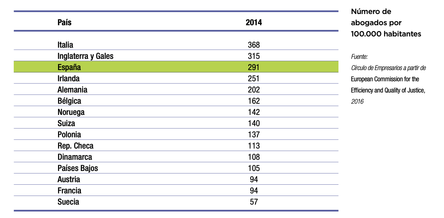 Por tanto, puede tener sentido plantear la posibilidad de aumentar el gasto en tribunales, aunque sería vital revisar antes su composición actual y compararnos con aquellos países que, con niveles similares, logran mejores resultados. Por ejemplo, revisando la estructura de personal podemos ver que España tiene un número medio-bajo de jueces profesionales. Sin embargo, somos uno de los países europeos con más personal de Justicia por magistrado, como también ocupamos un puesto destacado en el ranking que compara el número de abogados per cápita de nuestro país.