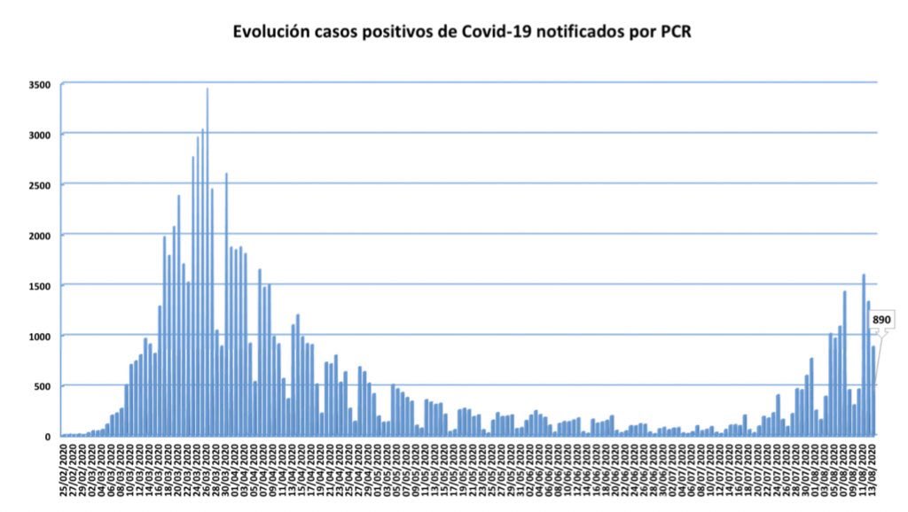 Pero, ¿qué hay detrás de esa alarma? ¿De verdad está Madrid ante una situación comparable a la de los primeros compases de la pandemia? Lo cierto es que los datos reflejan un aumento de positivos, pero esto no quiere decir, en absoluto, que la situación observada en agosto sea equiparable a la del pasado mes de marzo.