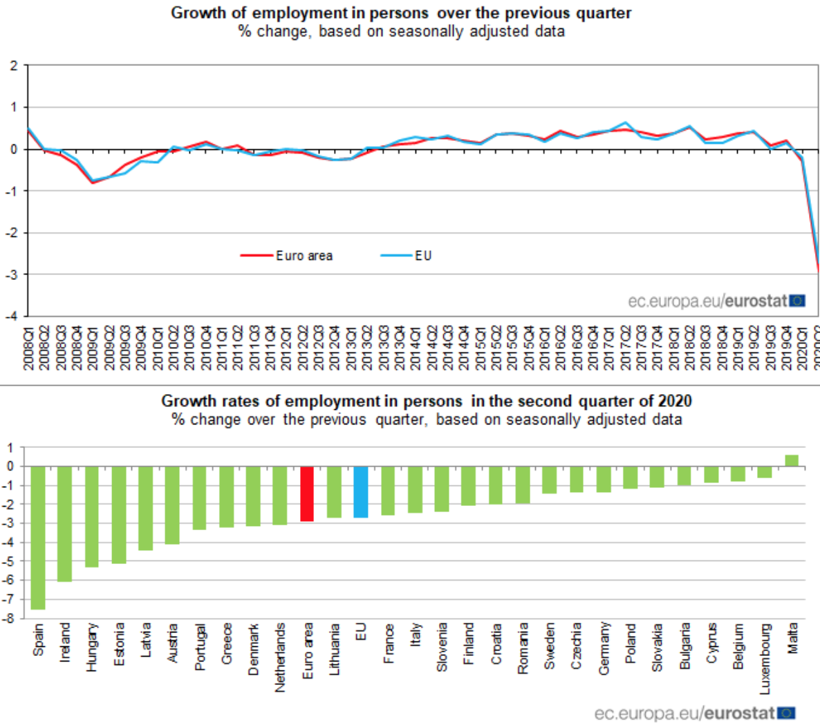 El único Estado miembro en el que no se produjo una contracción del empleo entre abril y junio con respecto al primer trimestre fue Malta, donde tuvo lugar un incremento del 0,6%.