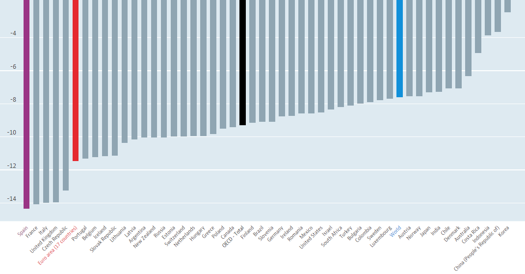 Además, según las previsiones que elaboró la OCDE el pasado mes de junio, España sufriría la peor recesión del mundo desarrollado en 2020, con una contracción de entre el 11% y el 14% en el peor escenario, que incluía el impacto de una segunda ola.