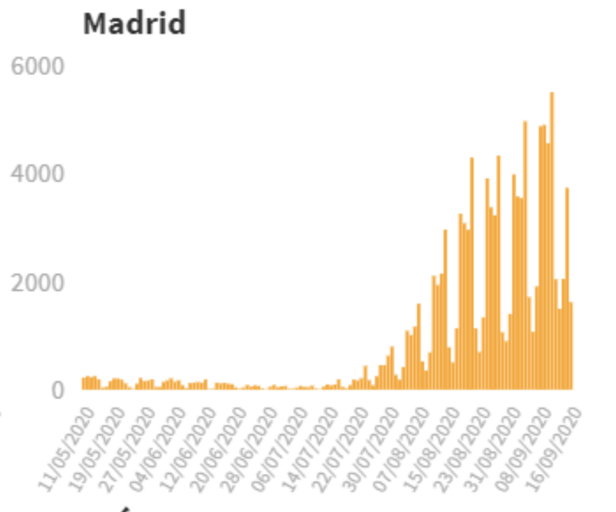 Por otro lado, aunque se hace un 39% más de pruebas, el porcentaje de positivos registrado en Madrid es más alto que en el resto de España, puesto que el 22% de las pruebas arrojan tal resultado, frente a un promedio nacional del 13%. Por lo tanto, las complejas labores de rastreo estarían dando mejores frutos a la hora de detectar cómo se propaga la enfermedad.