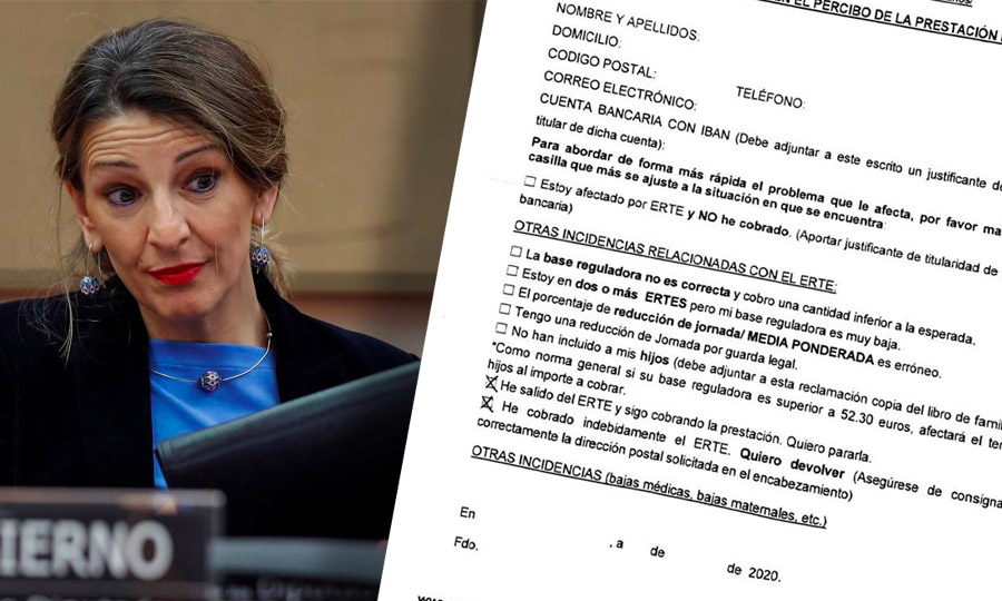 Como se observa en la imagen, el papel consiste en una "Comunicación de incidencias en el percibo de la prestación por ERTE". Contiene logotipo del SEPE y del Ministerio de Trabajo y una serie de datos personales para rellenar. El resto es un cuestionario con los diferentes problemas con los que un afectado se puede encontrar y debe marcar con una X. Desde ERTE todavía sin cobrar hasta ERTE cobrados indebidamente, así hasta ocho incidencias. De forma indirecta —y al incluirlas en un cuestionario tipo— el Ministerio de Yolanda Díaz estaría reconociendo por escrito todos los errores sistemáticos que se están dando con la prestación más popular de la crisis del coronavirus.