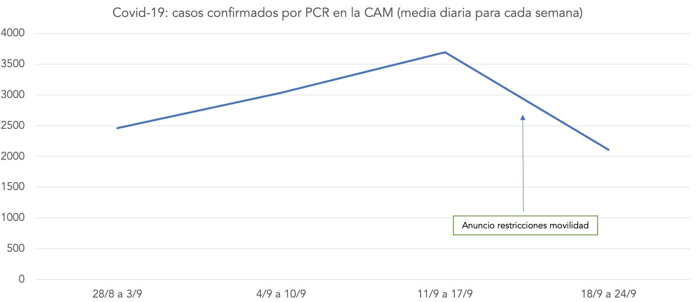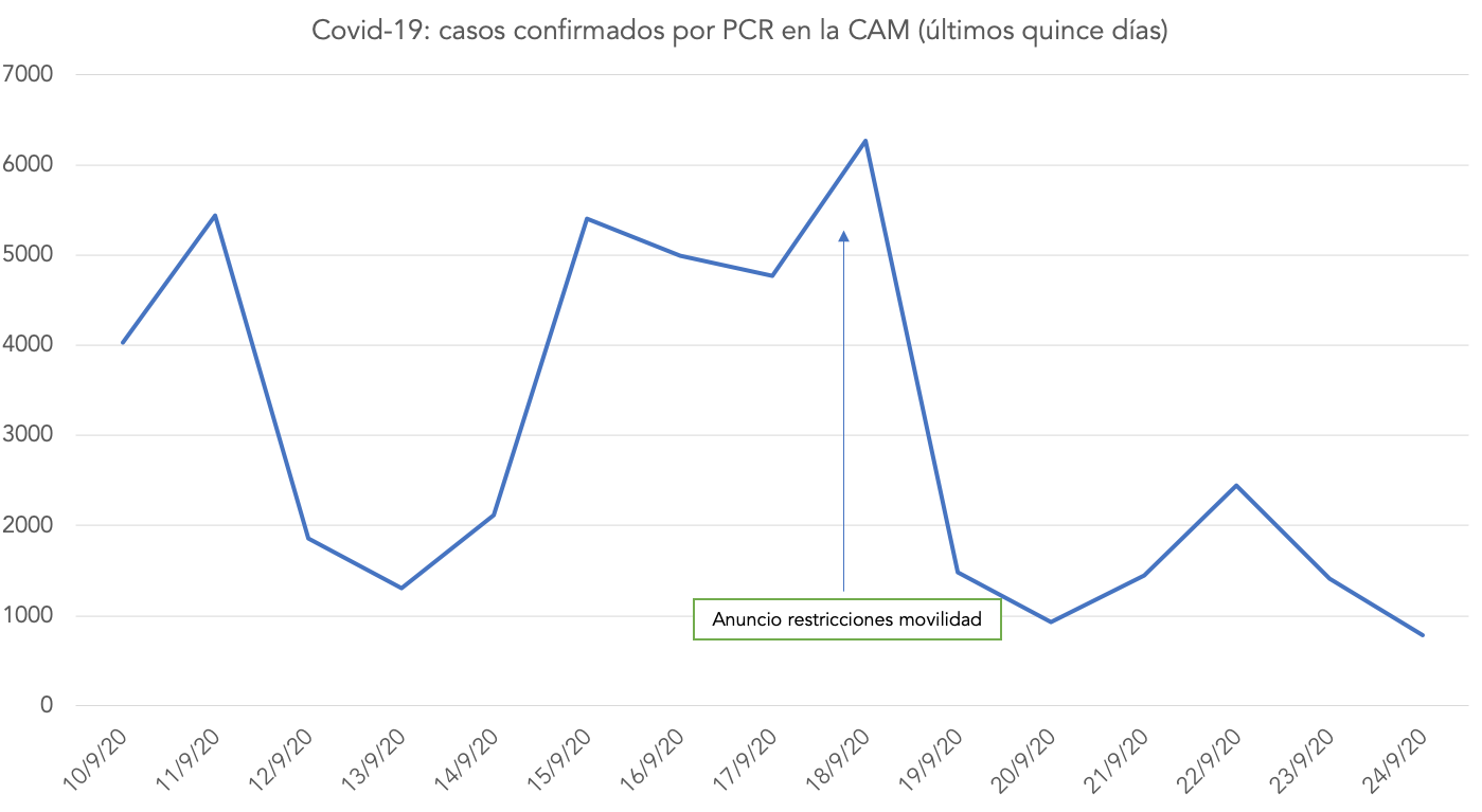 A la luz de estos indicadores, parece difícil de entender el cambio de discurso del ministerio de Sanidad respecto a la Comunidad de Madrid. Si las decisiones anunciadas el 18 de septiembre fueron respaldadas por Salvador Illa, no tiene sentido plantear su retirada antes de comprobar su efectividad, para lo cual harán falta 10-15 días, pero menos aún si los indicadores ya reflejan una cierta mejoría.