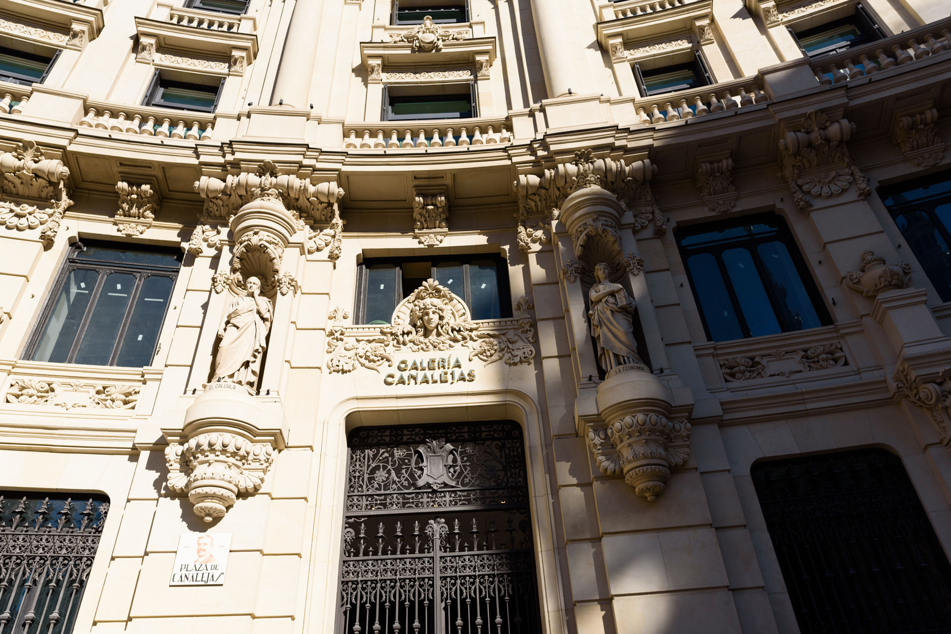 Una de las dos entradas a las Galerías Canalejas. Durante la obra se han restaurado 7.895 m2 de fachada de 7 edificios.