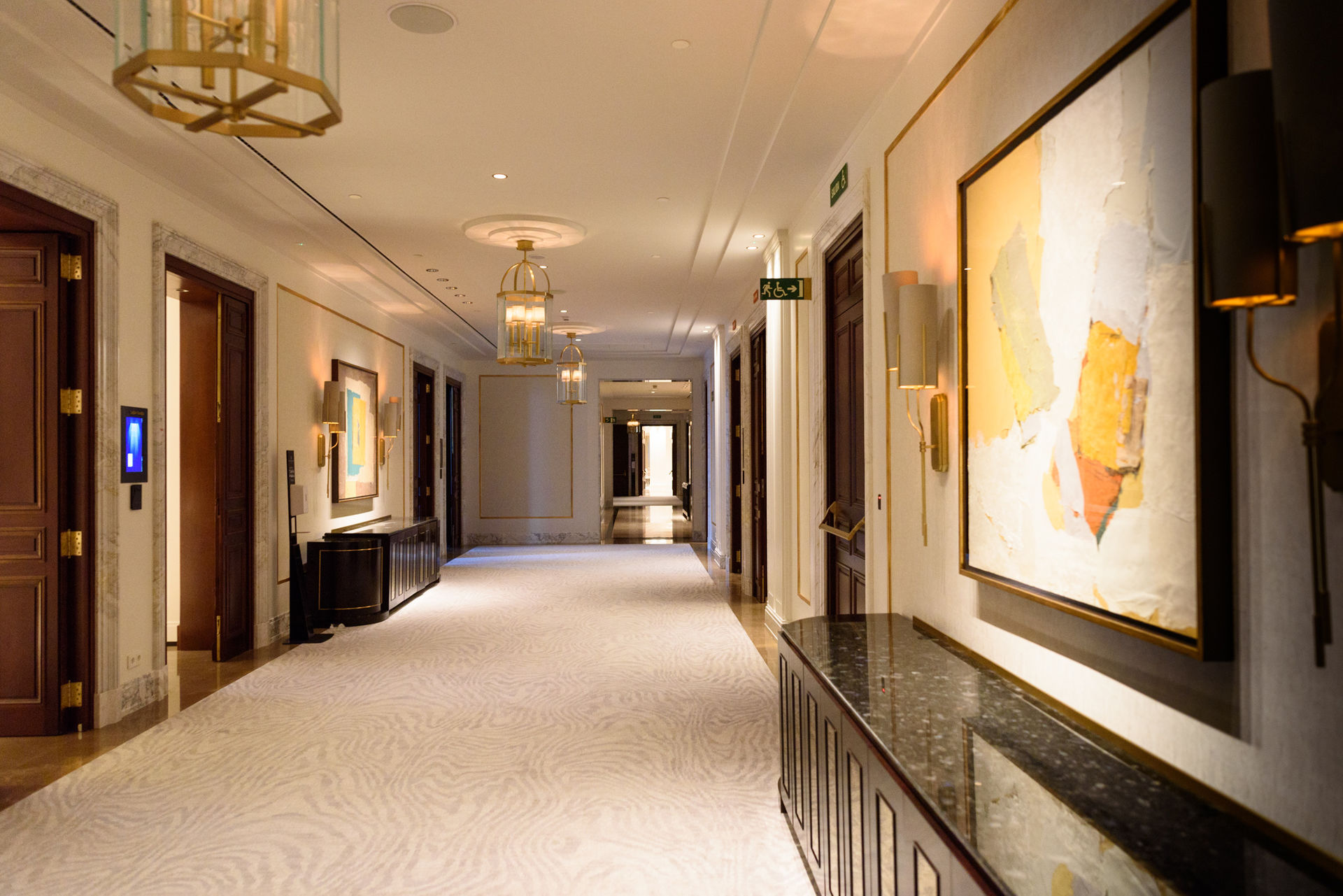 Los pasillos del una de las plantas donde se ubican las lujosas habitaciones el hotel.