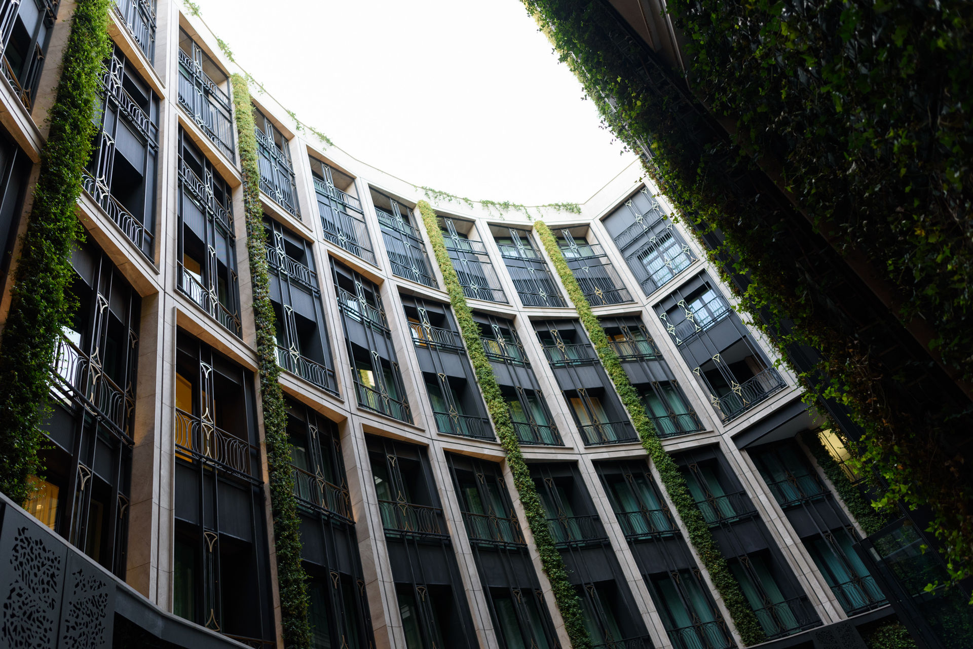 Es interesante y curioso el patio interior. Unl jardín vertical al que dan muchas habitaciones que no tienen ventana a la parte exterior. En su centro tiene una gran cascada de agua, que junto a las plantas, refrigera la zona bajando las temperatura unos cuantos grados.
